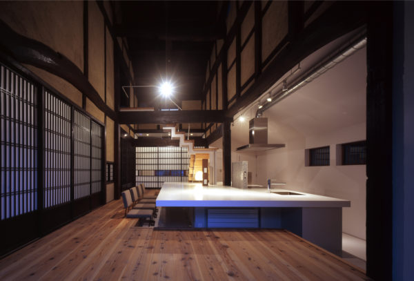 敷地斜め4方向への構えと貫通通路を持つ、混構造(木造+S造)の飲食店兼果物店